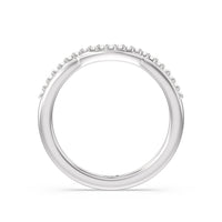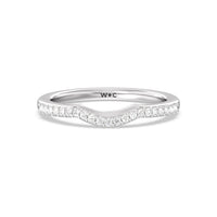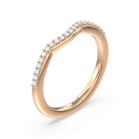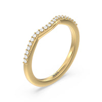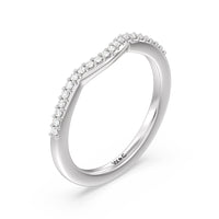 This curved fine line diamond set wedding band is perfectly designed to complement our fine line 3 stone pear engagement ring style for a modern and sophisticated look.