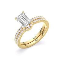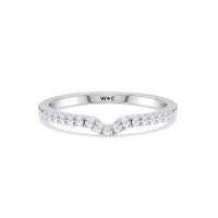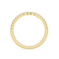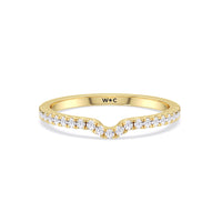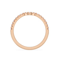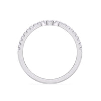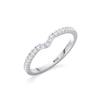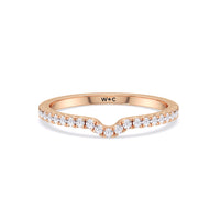 This curved diamond set wedding band is perfectly contoured to complement our fine vela classic pave diamond engagement ring for a simple and sophisticated look.