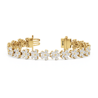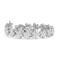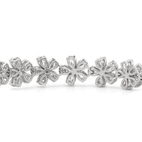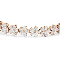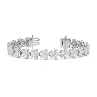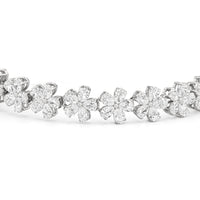 This diamond bracelet boasts a radiant pattern of daisies meant to flatter the wrist. The Daisy Bracelet is a testament to our commitment to quality, with each hand-selected diamond meticulously mounted on a secure claw-prong setting. The nature-inspired style ensures a timeless appeal, perfectly capturing the essence of natural beauty.