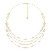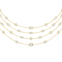 The Five Layer Multi Shape Bezel Station Necklace is an extraordinary and luxurious piece of jewelry that commands attention with its captivating design and unparalleled brilliance.