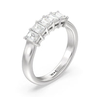 This beautiful classic diamond ring is adorned with 5 stunning emerald cut diamonds, perfectly matched and crafted in gold featuring.