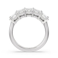 Mark five happy years in love through this 5-stone diamond ring. Five emerald-cut diamonds are elegantly nestled in a series of shared prong baskets. The wide surface area and elongated shape of the step-cut diamonds that adorn this ring display mirror-like elegance that separates it from the rest.