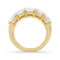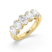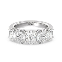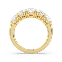 One simply can't deny the wow factor of this five-stone anniversary ring. It features a beautifully polished band set with five round diamonds on secure shared-prong baskets. The beauty and brilliance of this ring are perfect for honoring five years of marriage, your family of five, or the five pillars of your strong and healthy relationship.