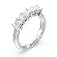 This beautiful anniversary band features five princess cut diamonds expertly set in luxurious.