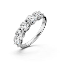 This stunning ring is a celebration of enduring love featuring five round brilliant cut diamonds, all beautifully set gold.