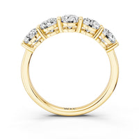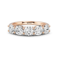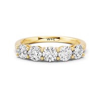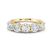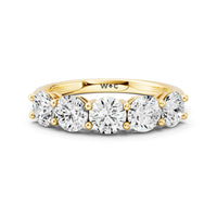 This stunning ring is a celebration of enduring love featuring five round brilliant cut diamonds, all beautifully set gold.