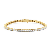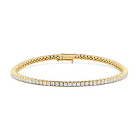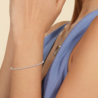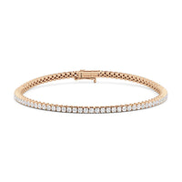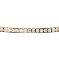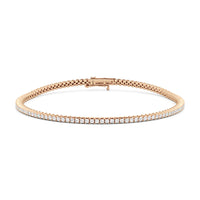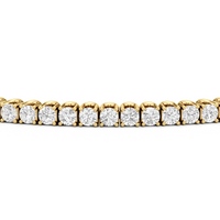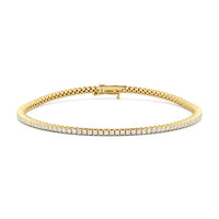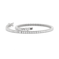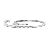 An alluring piece of jewelry to bring intrigue to your collection and to your accessorizing style. This tennis bracelet features a line of U-shaped metal baskets, each topped with a brilliant round diamond. The "scoop" setting maximizes the stone's sparkle and gives this classic line bracelet a more modern and playful style.