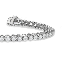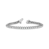 An alluring piece of jewelry to bring intrigue to your collection and to your accessorizing style. This tennis bracelet features a line of U-shaped metal baskets, each topped with a brilliant round diamond. The "scoop" setting maximizes the stone's sparkle and gives this classic line bracelet a more modern and playful style.