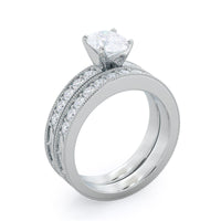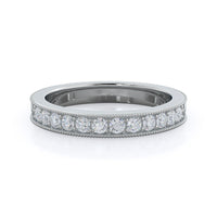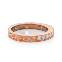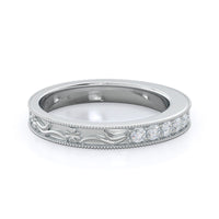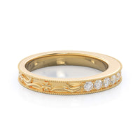 Crafting a simple pave wedding band wouldn't do justice to this engagement ring or the wedding ring stack it would go into. So we made sure every single tiny detail you love from the diamond ring, from the milgrain detailing to the filigree curls underneath, was replicated on this band.