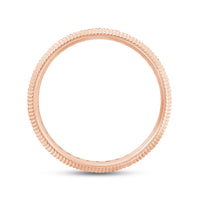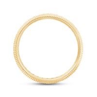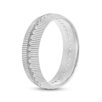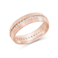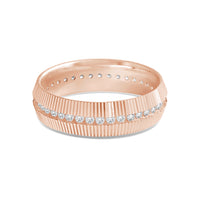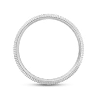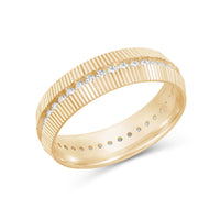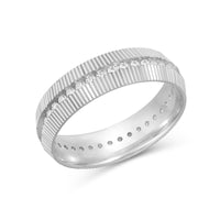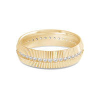 Meet your new favorite accessory. This band is encircled with prong-set round diamonds positioned in a central channel. Flanking the row of brilliant stones are precisely cut grooves reminiscent of a luxury timepiece's signature fluted design element.