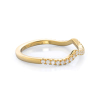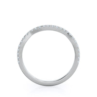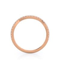We think the curves on this pave wedding band look a bit like antique lace. And through the ring is gorgeous enough to be worn on its own, it and its shape are purposefully designed for it to be a matching wedding band for our Forever Twisting Diamond Engagement Ring.