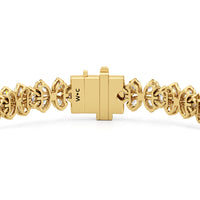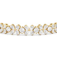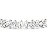 The Clover Bracelet carries effortless charm. It boasts a row of stylized floral motifs, each made of precious diamonds selected for their vibrant scintillation. The bracelet's design is inspired by the iconic four-leaf clover, bringing luck with you wherever you may go.
