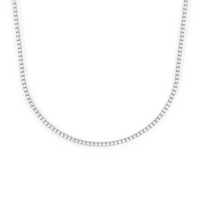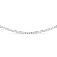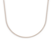 The Four Prong Half Diamond Tennis Necklace is perfect for any occasion—whether casual or glamorous. Diamonds grace only the front half, presenting a seamless line of brilliance. Each round diamond is cradled by four prongs, allowing maximum light exposure without compromising security or stability. The diamonds flow into a sleek chain at the back for a comfortable fit.