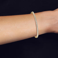 This classic tennis bracelet features a single row of sparkling brilliant cut diamonds