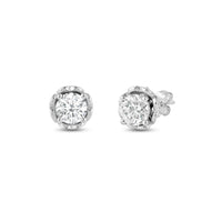 These earrings offer a sweet update to the classic diamond studs. Each earring features a stunning diamond on a four-prong heart basket. The sides of the earrings reveal extra diamonds punctuating every heart-shaped silhouette that makes up the basket setting.