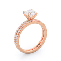 Petite French set pave diamonds that accentuate your center stone with 1/5 cts