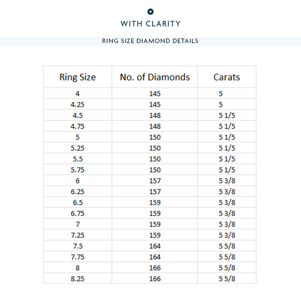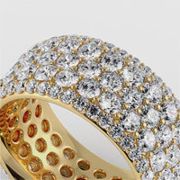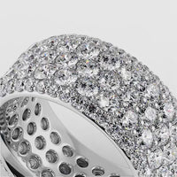 One can never have too much glitter, says this ring. The entire wide band of this piece comes fully dressed in sparkle. It twinkles with opulence given its five rows of brilliant round diamonds. The luxurious profile of this eternity ring makes it the perfect self-love ring.