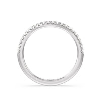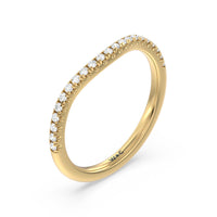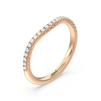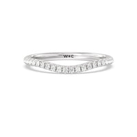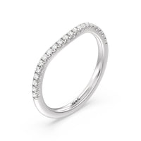This curved diamond set wedding band is perfectly contoured to complement our geometric diamond engagement ring for a simple and sophisticated look.
