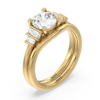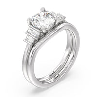 This curved band is perfectly contoured to complement our geometric diamond engagement ring for a simple and sophisticated look.
