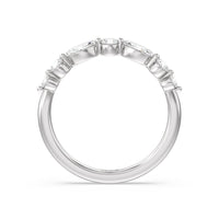 Shimmering pave diamonds cascade down this band to create a timeless beauty that will never go out of style. Designed to be paired with our glamorous fancy side stones catherdral engagement ring for a simple and sophisticated look.