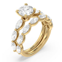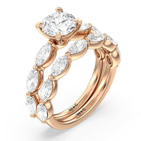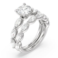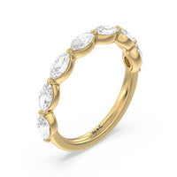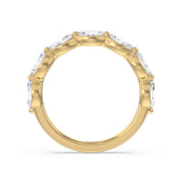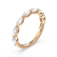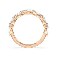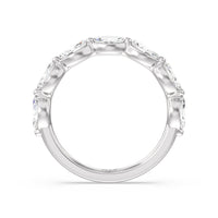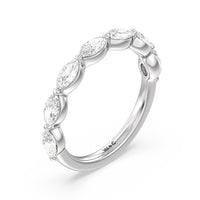 Shimmering pave diamonds cascade down this band to create a timeless beauty that will never go out of style. Designed to be paired with our glamorous marquise side stone solitaire engagement ring for a simple and sophisticated look.