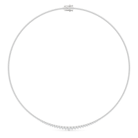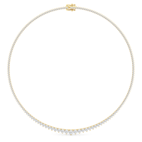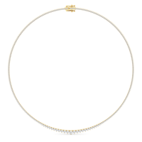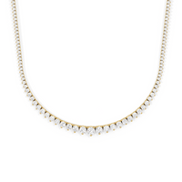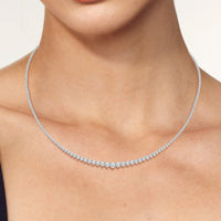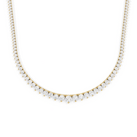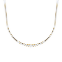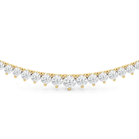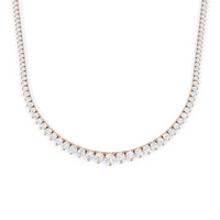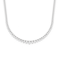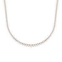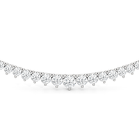 Redefine the rules of classic elegance with this Graduating Three Prong Diamond Tennis Necklace. It boasts a graceful progression of beauty and brilliance, with larger diamonds at the center tapering to smaller stones toward the clasp. Each stone is mounted on a three-prong setting that allows maximum light exposure, giving the necklace a weightless, almost floating appearance. This luxurious piece breaks from tradition with both its graduating diamonds and the delicate and airy three-prong setting.