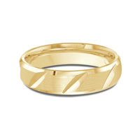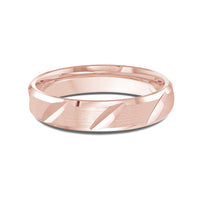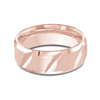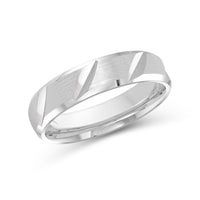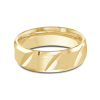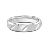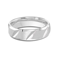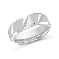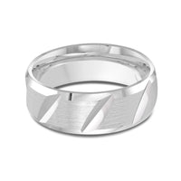 Designed with refined casualness, this men's band blurs the line between timeless and modern. The ring is shaped with rounded interior edges (comfort fit) and a satin-brushed exterior finish. Diagonal slits align the band's circumference that bring character and depth to the ring.