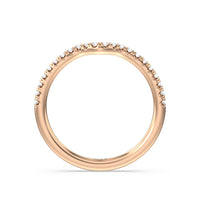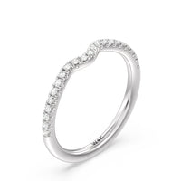 This curved diamond set wedding band is perfectly contoured to complement our grooved taper cathedral solitaire engagement ring for a simple and sophisticated look.