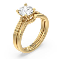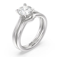 This curved band is perfectly contoured to complement our grooved taper cathedral solitaire engagement ring for a simple and sophisticated look.