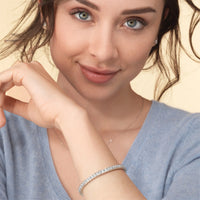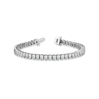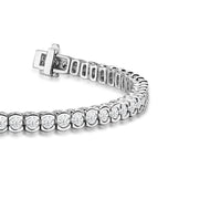 Take that casual chic look to the next level with this easy-to-wear and elegant tennis bracelet. It features a glittering line of round diamonds set on half bezels. The diamonds appear like twinkling little pillows that add that pleasant touch of sparkle to any outfit.