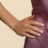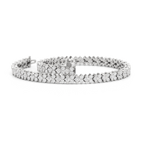 Geometry and symmetry brought another layer of charm to this stunning line bracelet. It exhibits a sophisticated play of light with its row of alternating kite-set princess diamonds on half bezels and duos of round diamonds.