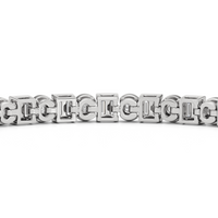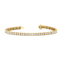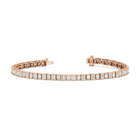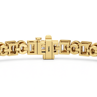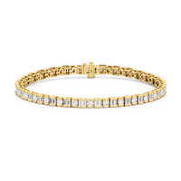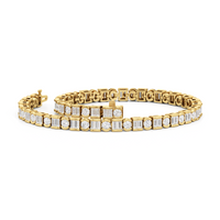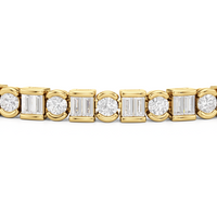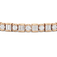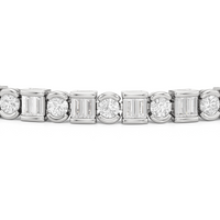 This tennis bracelet boasts a seamless row of alternating round and baguette diamond duos in perfect half-bezel harmony. The sleek half-bezel setting enhances brilliance while securely cradling the precious stones.