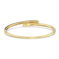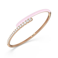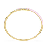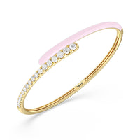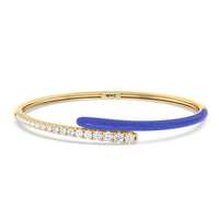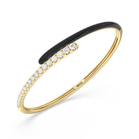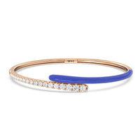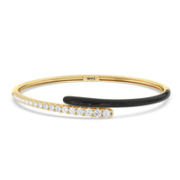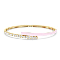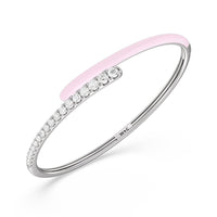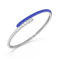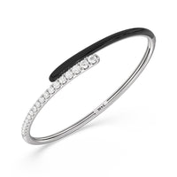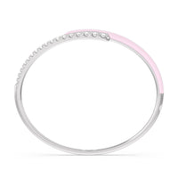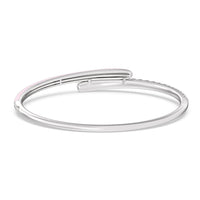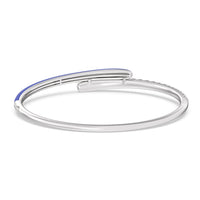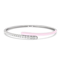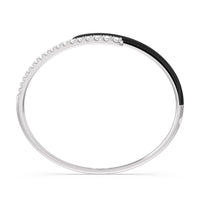 Add a playful pop with this two tone ceramic bangle with diamonds. This sterling silver bangle bracelet features a quarter of color and a quarter of sparkle. Round diamonds in tapering sizes line 1/4 of the bangle's circumference while its opposite quarter side displays a vibrant ceramic finish.