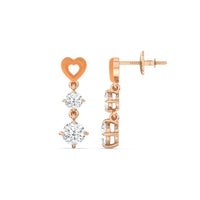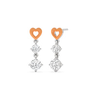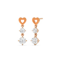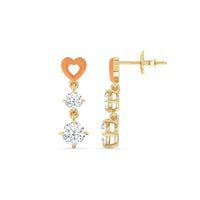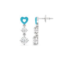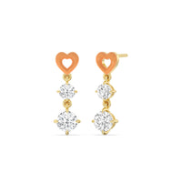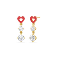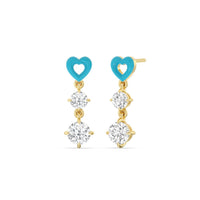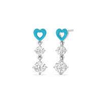 This pair of earrings has the perfect mix of brilliance and color. Each earring features a ceramic heart-shaped post. Dropping from each heart post is a pair of big and small round diamonds.