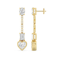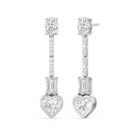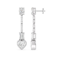 While these earrings are perfect for making a statement at parties and special events, their design is versatile, making them suitable for various occasions where you want to showcase your unique style.The heart-shaped diamonds at the ends of these earrings are the focal point, exuding romance and timeless charm. They symbolize love and passion, adding a touch of sentiment to the design.