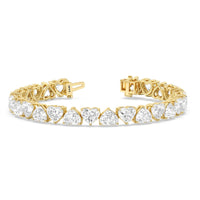 Prepare to be captivated by our exceptional Alternating North-South Heart Shape Tennis Bracelet. This bracelet is a work of art, combining the elegance of heart-shaped diamonds with a unique alternating orientation to create a piece that's not just jewelry but a symbol of love, charm, and timeless beauty.