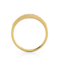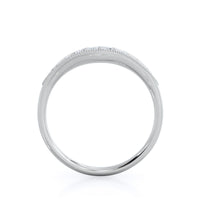 Eight delicate accent diamonds adorn the matching wedding band we created for our Heirloom Milgrain Diamond Engagement Ring. Like the shank of the diamond ring its mimicking, the stones get smaller as they extend down the band for an elegant effect that feels like it could be pulled from the Victorian era.