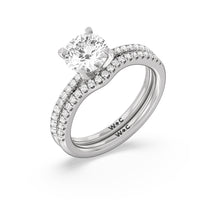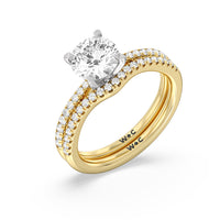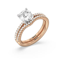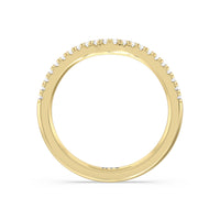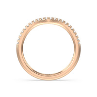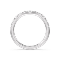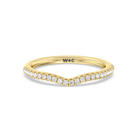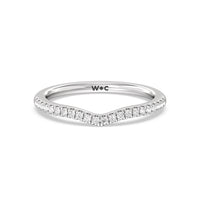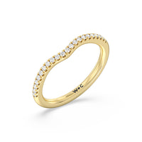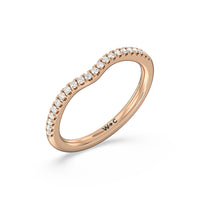 This curved diamond set wedding band is perfectly contoured to complement our hidden heart pave engagement ring for a simple and sophisticated look.