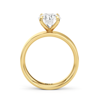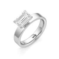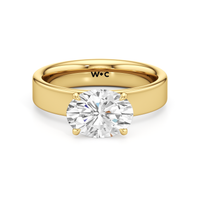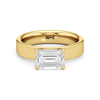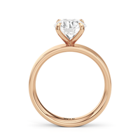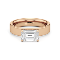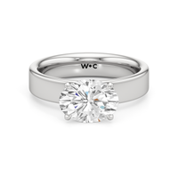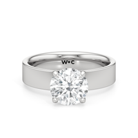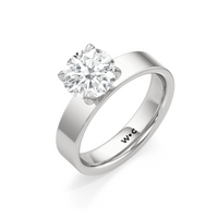 Aurora radiates a quiet strength, capturing the magic of a new dawn. This wide band engagement ring showcases a diamond set in a four prong basket onto the band’s surface, as if cradled by the horizon itself. Its understated elegance invites the eye to linger, while its design symbolizes the steady glow of a love that grows brighter with time.