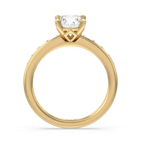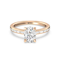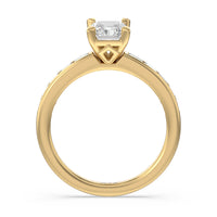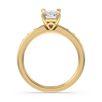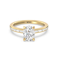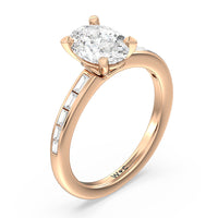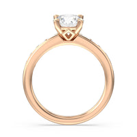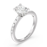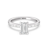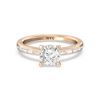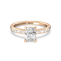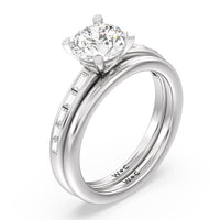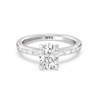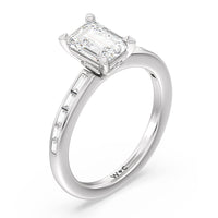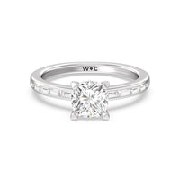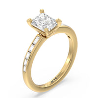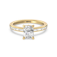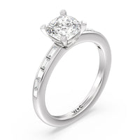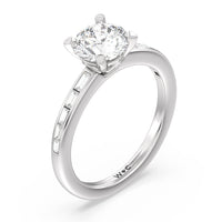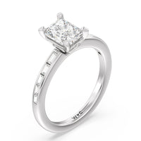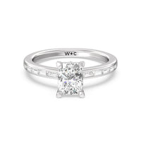 Even with an understated character, this solitaire is able to deliver a vivid sparkle. It features a solitary diamond center stone securely set on a unique basket. The glittering main diamond is accentuated by baguette-cut diamonds that maximize the distinct look of a channel setting.