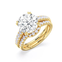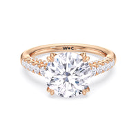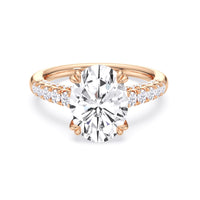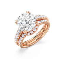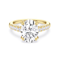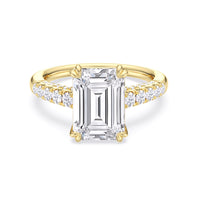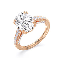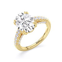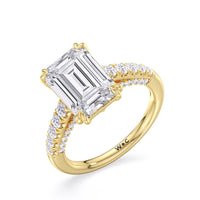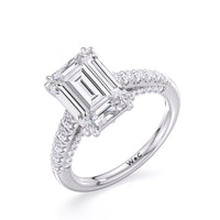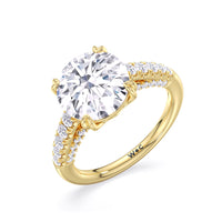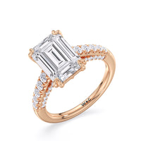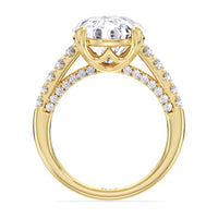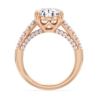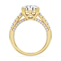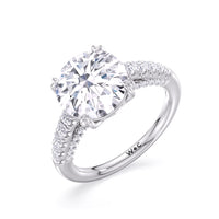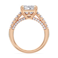 A perfect symbol for your everlasting love story, this engagement ring is secured with claw prongs and features a split shank lined with micro pave diamonds. The tapered band wraps gracefully around the finger, offering a brilliant appearance that is sure to turns heads.