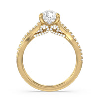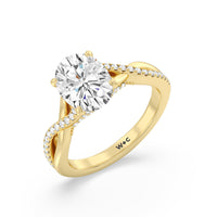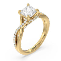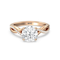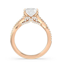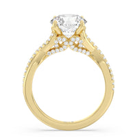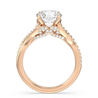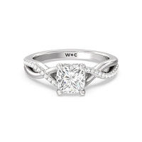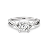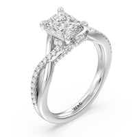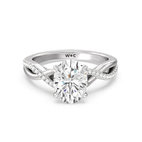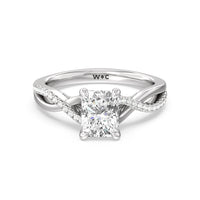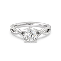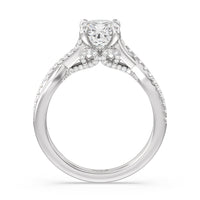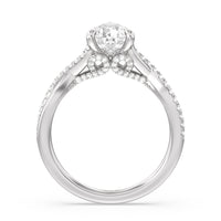 As a symbol of commitment, this elegant vintage-style ring features a beautifully shaped split shank that crosses and joins to accentuate the center stone. Filigree styling on the front view and beaded detail on the band add extra detail to stunning effect.