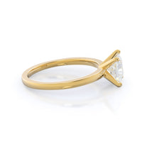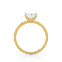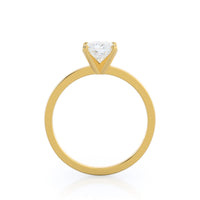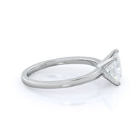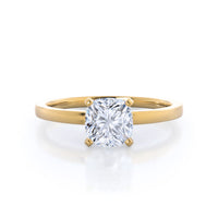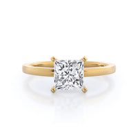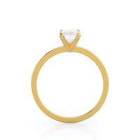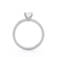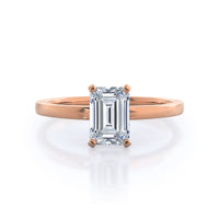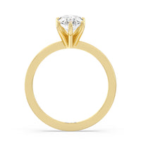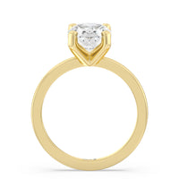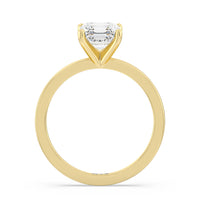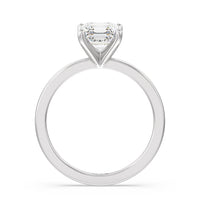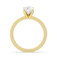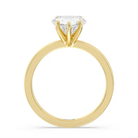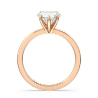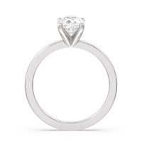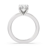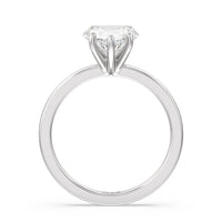 This ring has a classic solitaire style with a thinner band with smooth edges that put the focus on the center diamond.