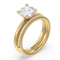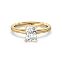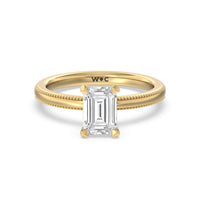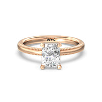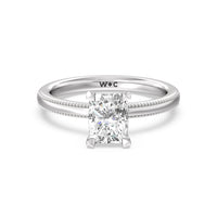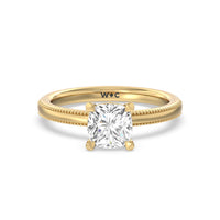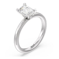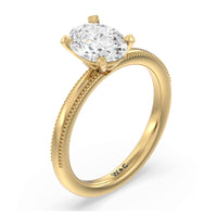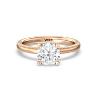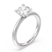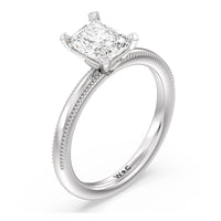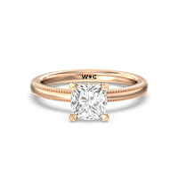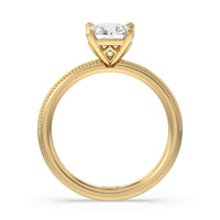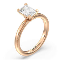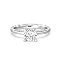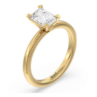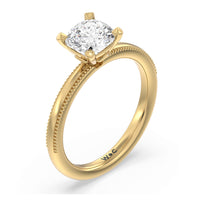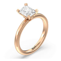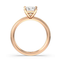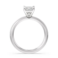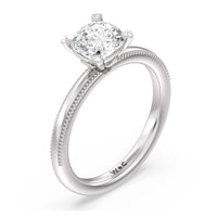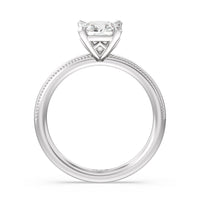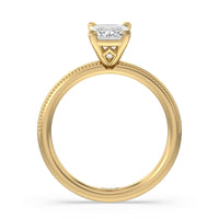 Exuding an air of playful elegance is this solitaire engagement ring with the gorgeous lone diamond set in a four-prong kite basket. The hidden kite-shaped accent on the basket and the extra details on the band's shoulders make this ring part classy and part whimsy, and definitely full of beauty.
