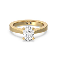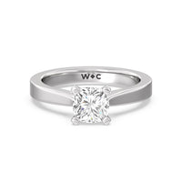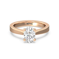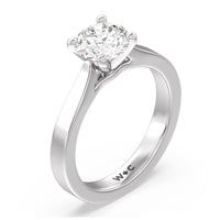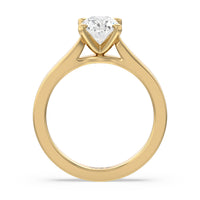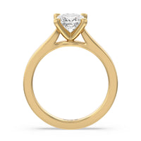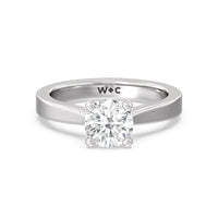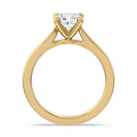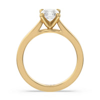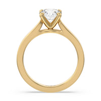 This classic cathedral solitaire ring combines the smooth finish of precious metal with a cathedral style head that lifts the center diamond up. Perfect to show off the sparkle of the center stone.