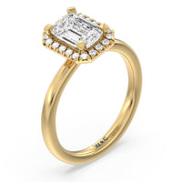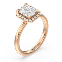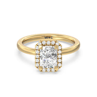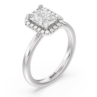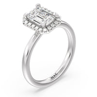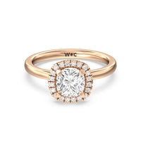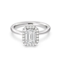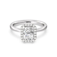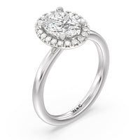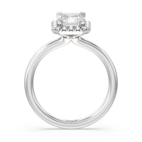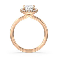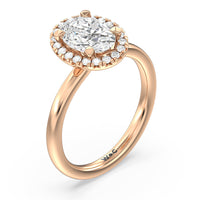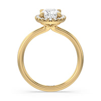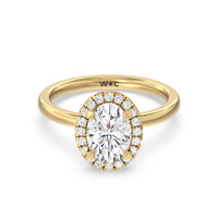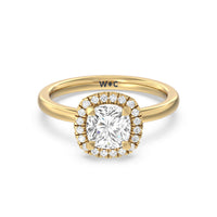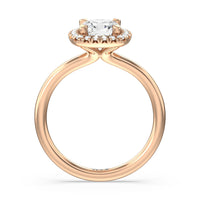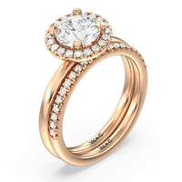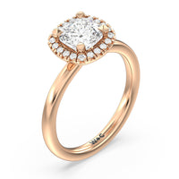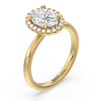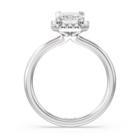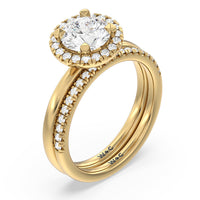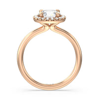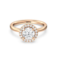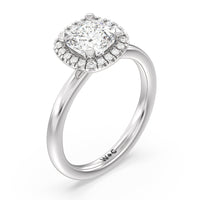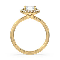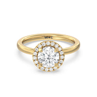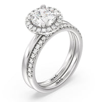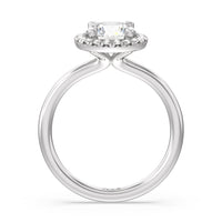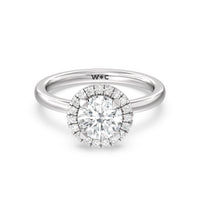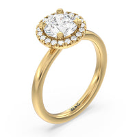 A delicate yet dazzling solitaire engagement ring. This fine piece features a classic polished band topped with a luxurious diamond center stone surrounded by a no-gap halo. Expect maximum brilliance and continuous sparkle from this token of love.