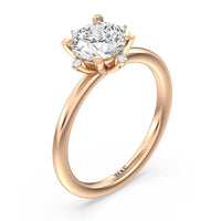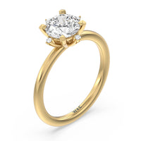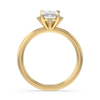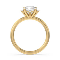 For the brightest star in your universe, here is a stunning engagement ring to suit her hand. Designed with a dreamy beauty, this piece features a highly polished slender band topped with a gorgeous diamond solitaire. Marking the north, east, south, and west points of the center gem are smaller diamonds for a star-like sparkle.