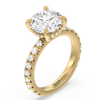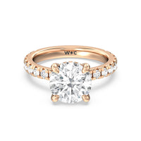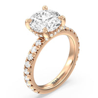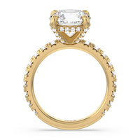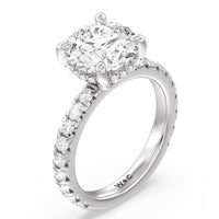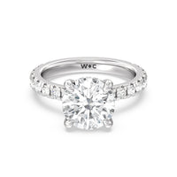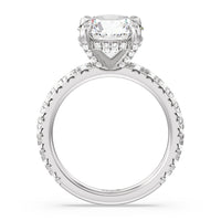 All eyes will be on this ring. This glamorous engagement ring features round diamonds running along almost the entire shank. The prong basket that secures the captivating central lab-grown diamond in place is also encrusted with diamonds. No doubt, your bride-to-be will easily fall head over heels in love with this ring's alluring sparkle.
