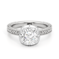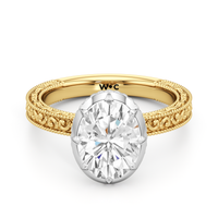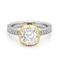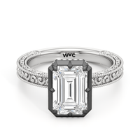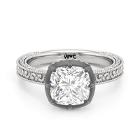 Designed with classic craftsmanship reimagined for today, Aurore captures the glow of something quietly powerful—like the connection between soulmates. Timeless, yet always beginning. The center diamond set in a hybrid serti dressé setting, is lifted with care and precision. Beneath it is a hidden halo that adds a soft brilliance from below, while the band echoes vintage detailing with its miglrained edges.
