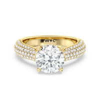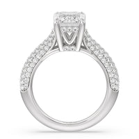 Found your "forever"? Make sure you also have the perfect forever ring for her. This diamond engagement ring assures you of endless sparkle. The domed shoulders pavé-set with diamonds rise towards the luxe center stone. The ring shines brighter with a hidden halo and a diamond-studded bridge.